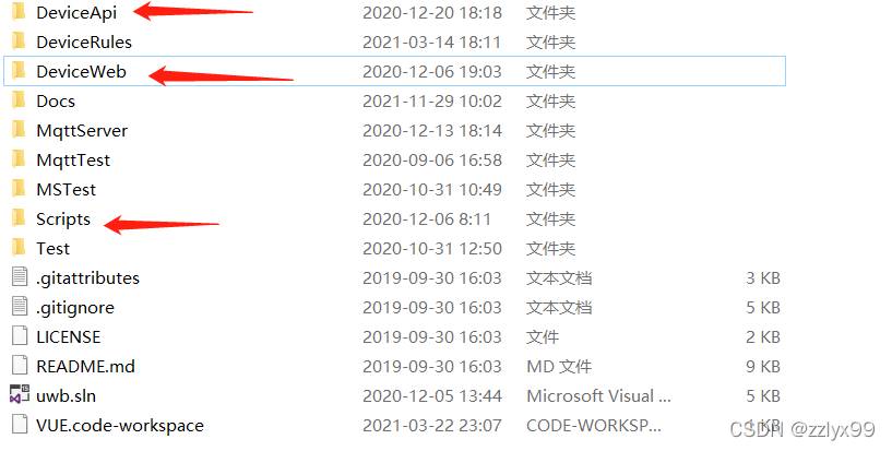 这里使用VS Code打开前端项目DeviceWeb,文件目录结构如下: