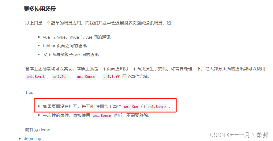 除此之外有人可能会想起为什么不适用uni.$on uni.$emit的方式,那就是看文档又不认真了嗷