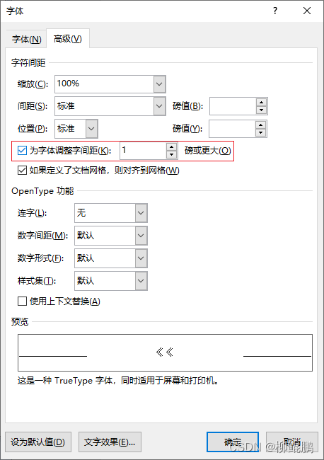 差异就在第一段有个kern属性。记得这一段是从另外一个文档中粘贴过来的。研究了一下设置,选中整段,如下设置: