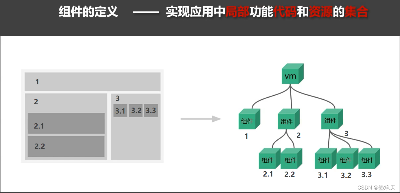 理解: 用来实现局部(特定)功能效果的代码集合(html/css/js/image…..) 为什么: 一个界面的功能很复杂,存在代码复用率低,不好维护等等的问题 作用: 复用编码, 简化项目编码, 提高运行效率