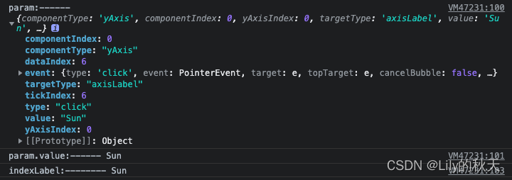 1.这里param打印出来的是你点击后返回给你的所有数据(注意点击坐标轴和图表内部返回的是不同的对象);