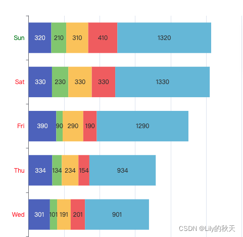 ?使用的是官网给出的堆叠柱状图的例子修改的,链接如下: