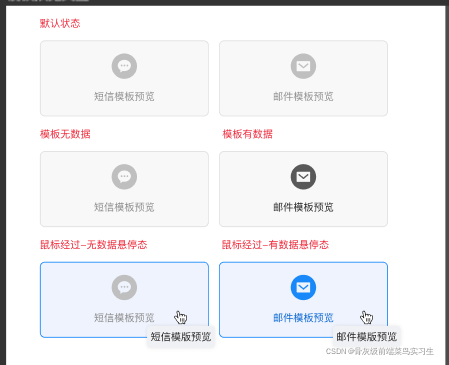 如图,其中的模板有数据时,和鼠标经过-无数据悬停态的时候的svg图标没有,于是我和ui就去要了一下图标,但是ui说svg可以改颜色,并让我按照这个改下就行,不必要再切图了,