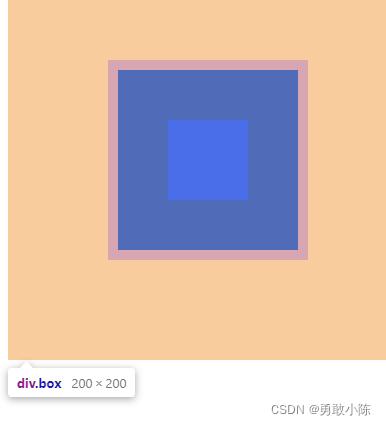 ? ? ? ? 怪异盒模型,可以理解为我们已经把这个盒子换成铁盒子了,不论加padding还是border都不会去影响这个铁盒子,把盒子的空白(padding)加大,内容(content)就会变小,border也是,相当于在内部包装,但是,盒子的大小是不会改变的。还是同一个案例和代码,当改成怪异盒模型的时候,见下图,盒子的大小是写死的200px,添加border和padding只会挤压内容(content)。