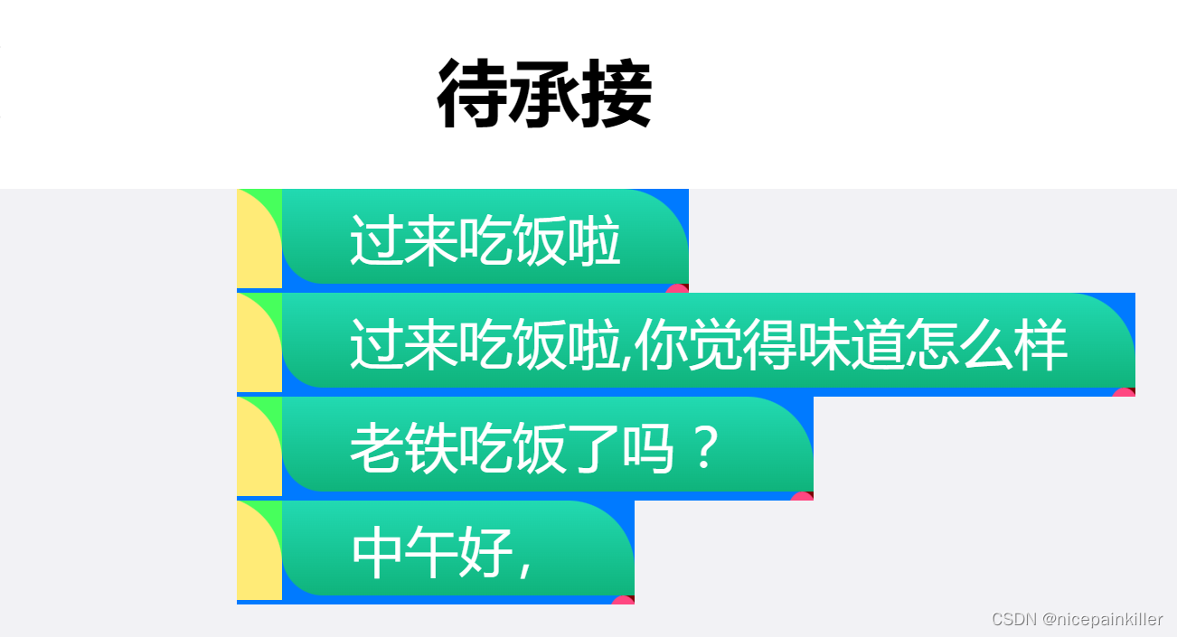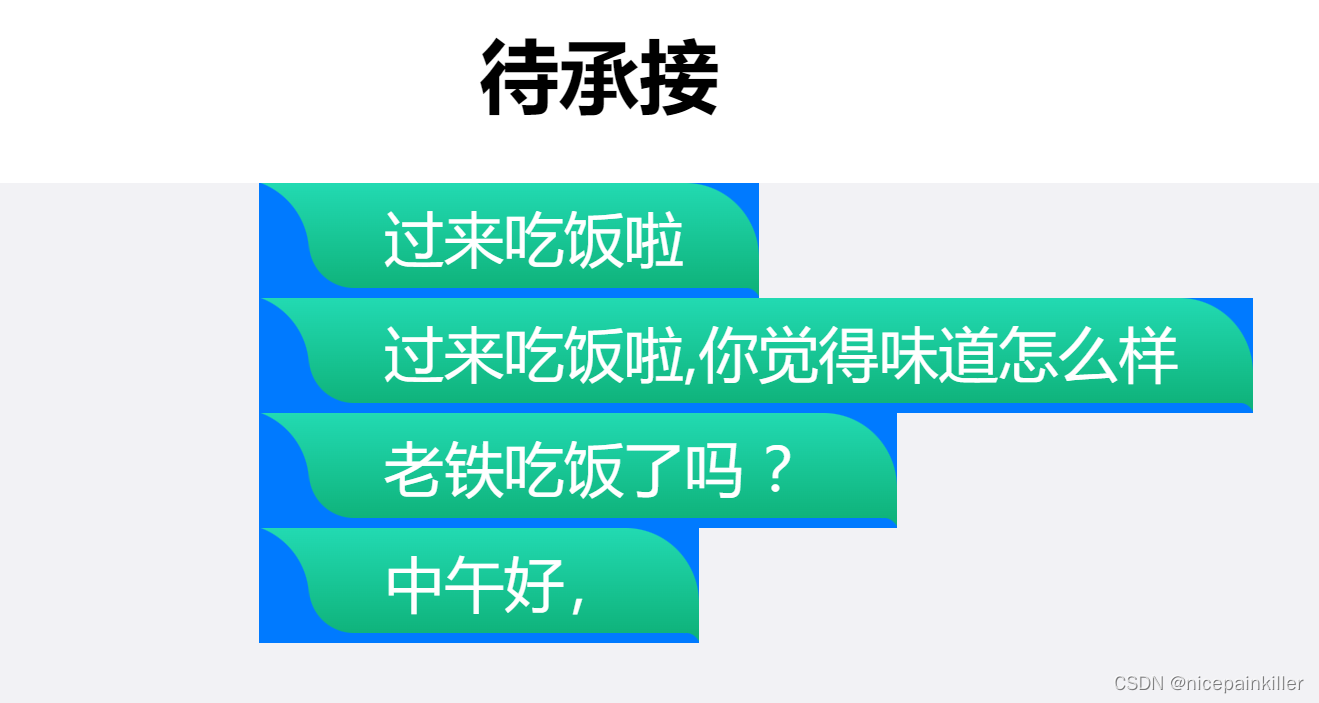 方法二: 这里也是利用的拼接;但是是利用 图片的拼接;我们 把两头的不规则部分 切图出来,中间这部分是有上限渐变 我们可以是程序 画出来并且可以 随着内容 撑大!