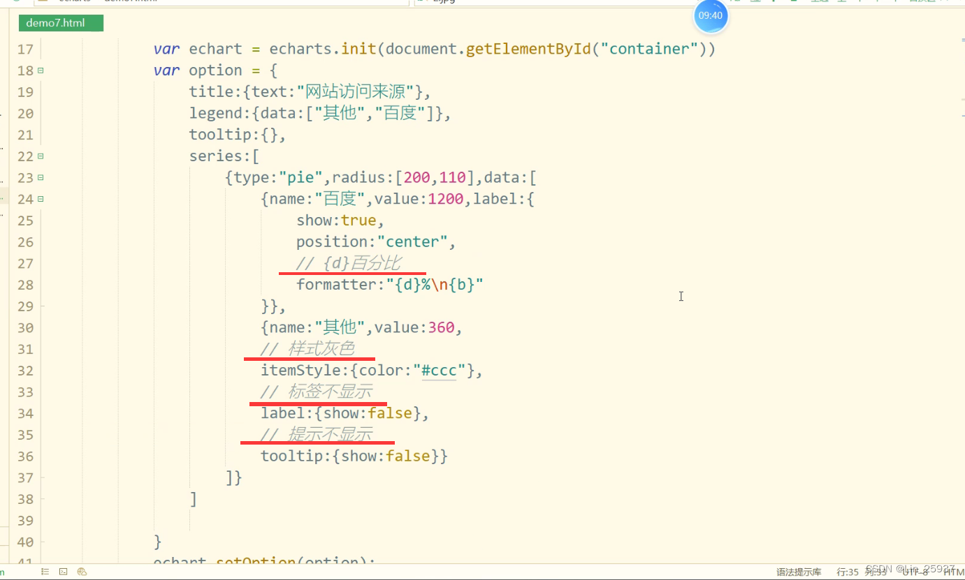 label标签 show:true是否显示 position:”insideRight“位置 formatter格式 formatter: “{a}\n{c}分” {a}系列名,{b}数据名 ,{c}数值,{d}百分百,