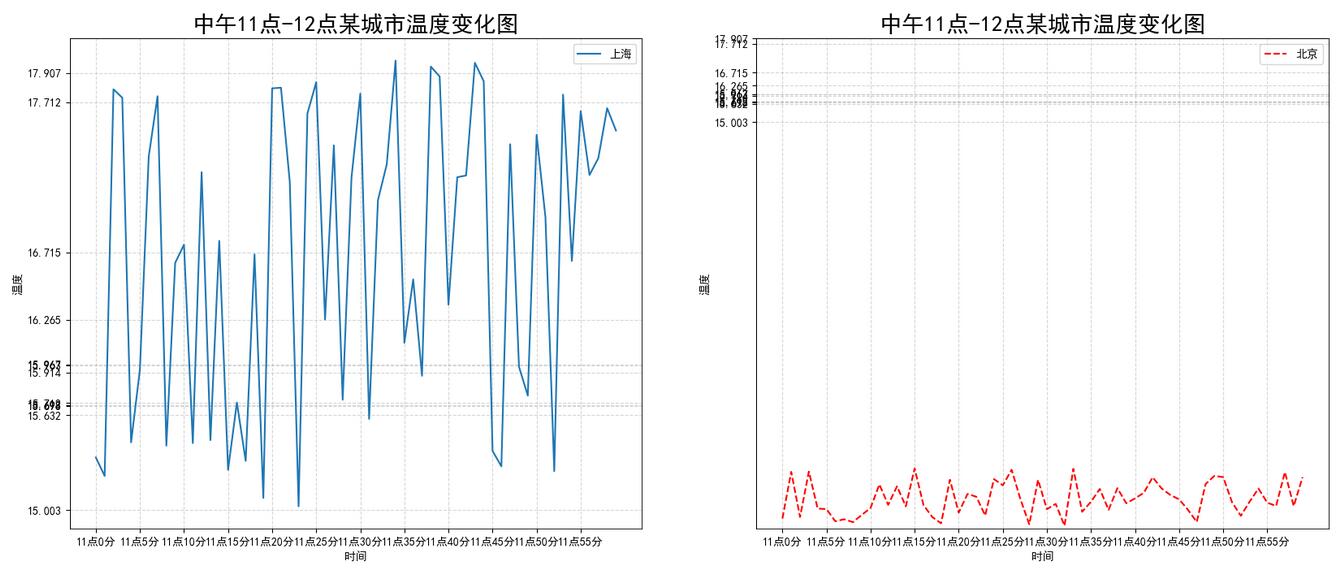 为了更好地理解所有基础绘图功能,我们通过天气温度变化的绘图来融合所有的基础API使用 需求:画出某城市11点到12点1小时内每分钟的温度变化折线图,温度范围在15度~18度。