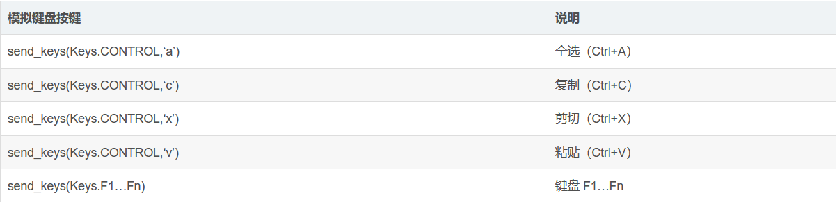 Selenium中的Key模块为我们提供了模拟键盘按键的方法,那就是send_keys()方法。它不仅可以模拟键盘输入,也可以模拟键盘的操作。