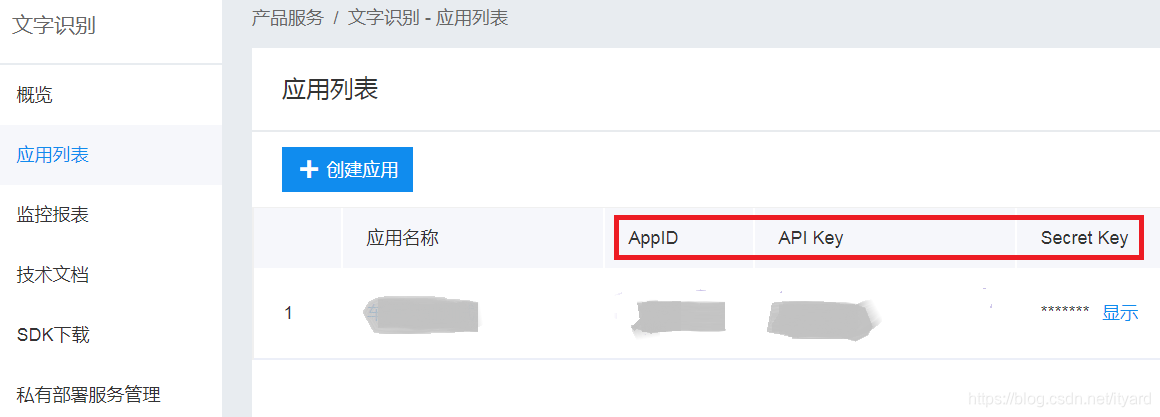 我们需要用到AppID &API Key &Secret Key 这三个值,记录一下。