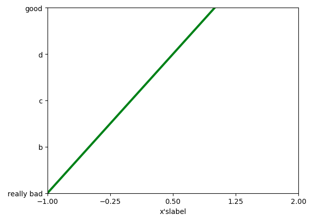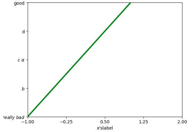 plt.yticks([-2,-1,0,1,2],[r'$really\ bad$',r'$b$',r'$c\ \alpha$','d','good'])