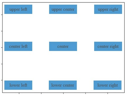 ????????那么,在绘制图表时,若用到坐标轴的范围限制,如xlim=(0, 16), ylim=(0, 9)。在此基础上,如果要将图例放置到点(2, 2)上,loc实际传入的参数应该为: