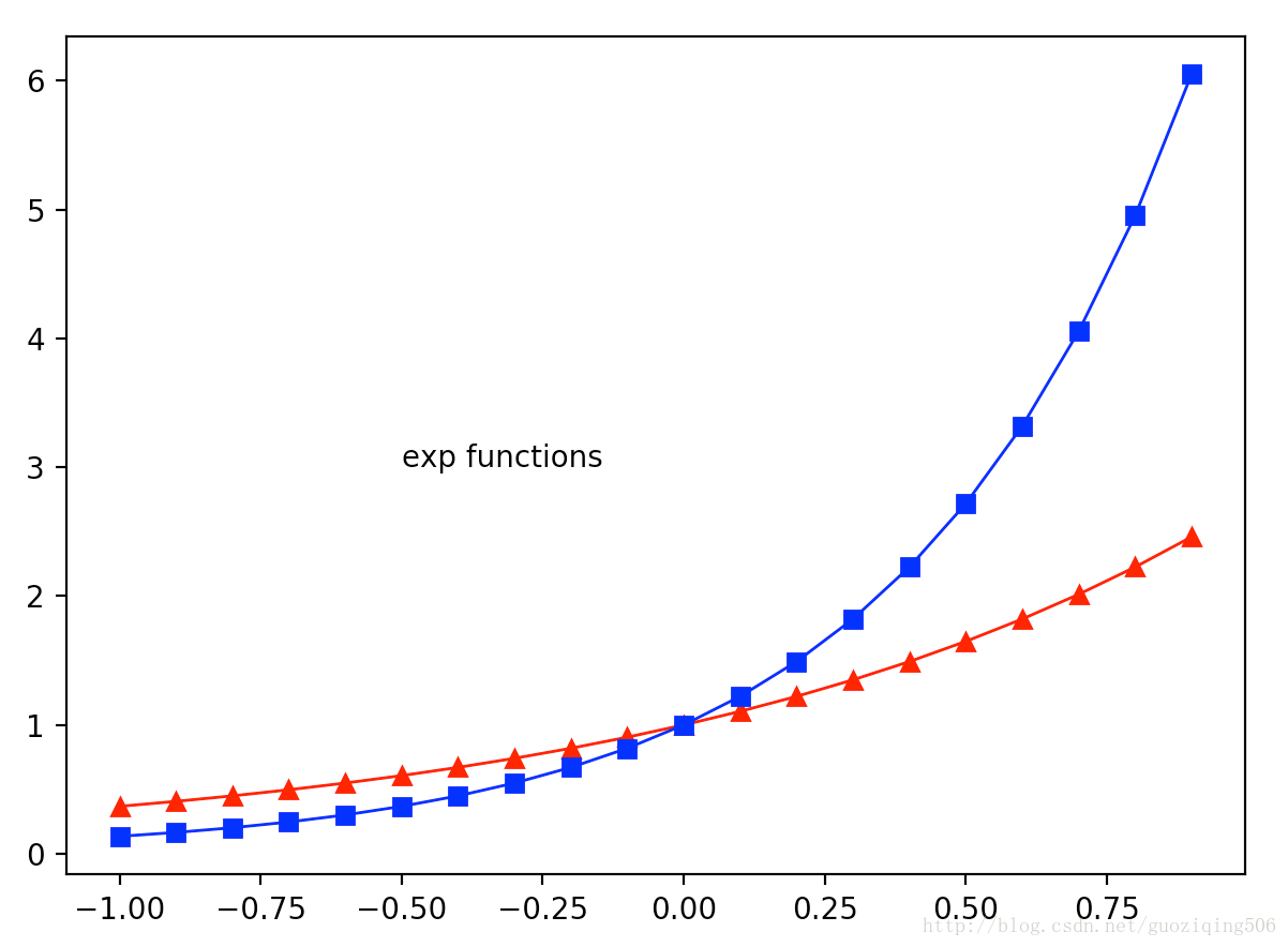 plt.text(-0.5, 3, "exp functions", fontsize=10)