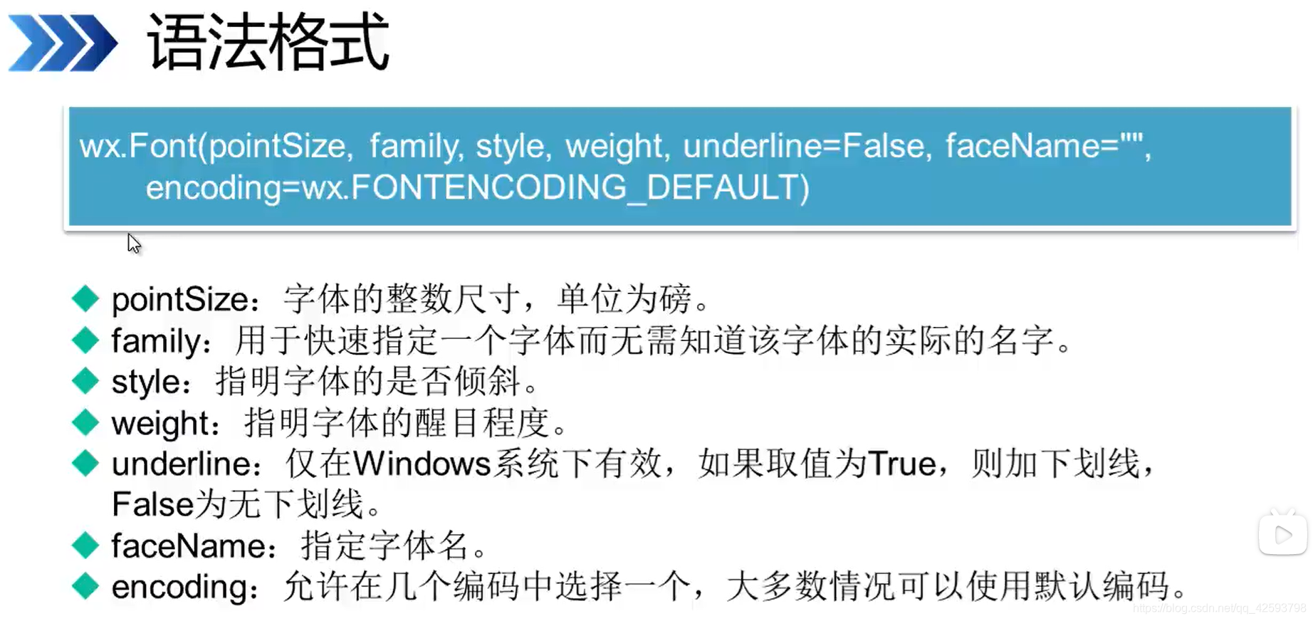 wx.Frame.__init__(self, parent, id, title="创建Frame", pos=(100, 100), size=(300, 300), )
