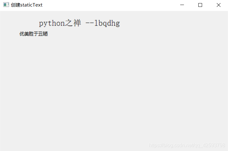 wx.StaticText(panel, label = "python之禅 --lbqdhg", pos=(100,20))