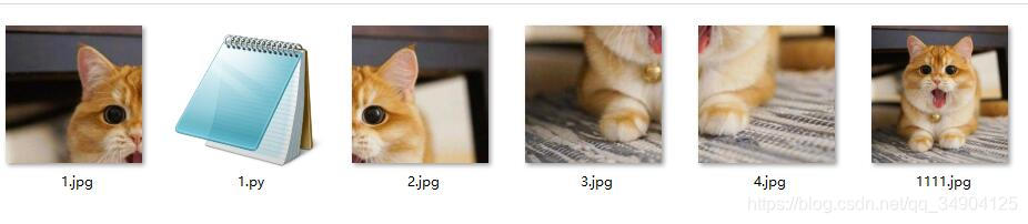我们我这里代码为1.py, 原图是1111.jpg的猫图片,被分成了4个等分,那么如何还原回去那,