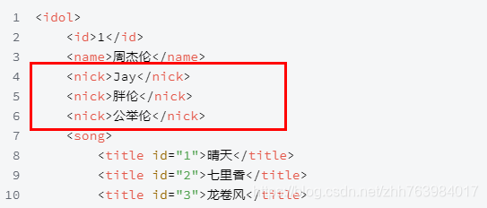 # idol标签后面是两杠连着nick标签的话,表示迭代idol里面所有的nick标签出来
