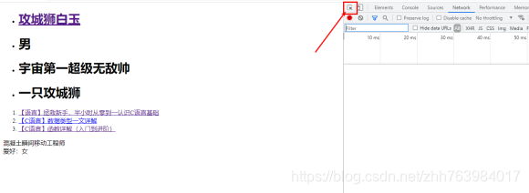 在我们打开我预先准备好的网页之后,按一下F12,打开开发者工具,点击第一个按钮“选择一个元素进行审查”