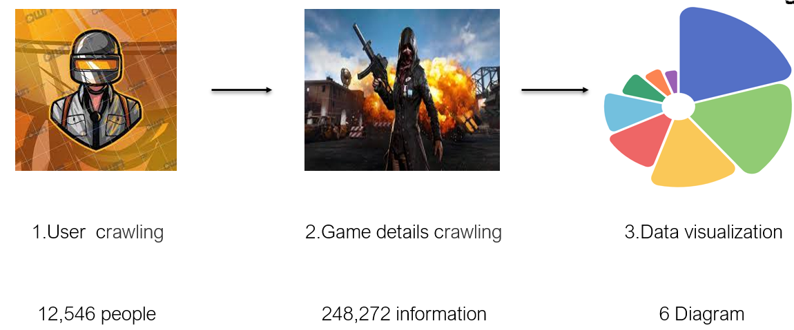 这个项目最初也是在github的爬虫项目集合中看到的,但是翻遍网上的各种教程,全是用的一份18年的公开数据集直接进行分析,跳过了数据爬取的数据,于是一番讨论之下我们决定自己爬数据自己分析。  如图所示,项目先是获取了1w左右的用户名,然后利用官方api获取了约2000局比赛的24w条数据,最后汇总出6张展示图 整体结果展示见ttzg.site(我也不知道什么时候网站我就会拿来干别的事了 且看且珍惜)