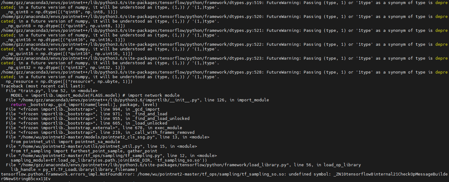 tensorflow.python.framework.errors_impl.NotFoundError: /home/wu/pointnet2-master/tf_ops/sampling/tf_sampling_so.so: undefined symbol: _ZN10tensorflow8internal21CheckOpMessageBuilder9NewStringB5cxx11Ev