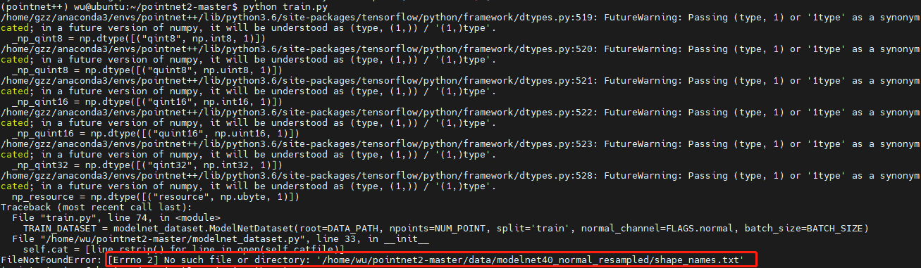 FileNotFoundError: [Errno 2] No such file or directory: ‘/home/wu/pointnet2-master/data/modelnet40_normal_resampled/shape_names.txt’