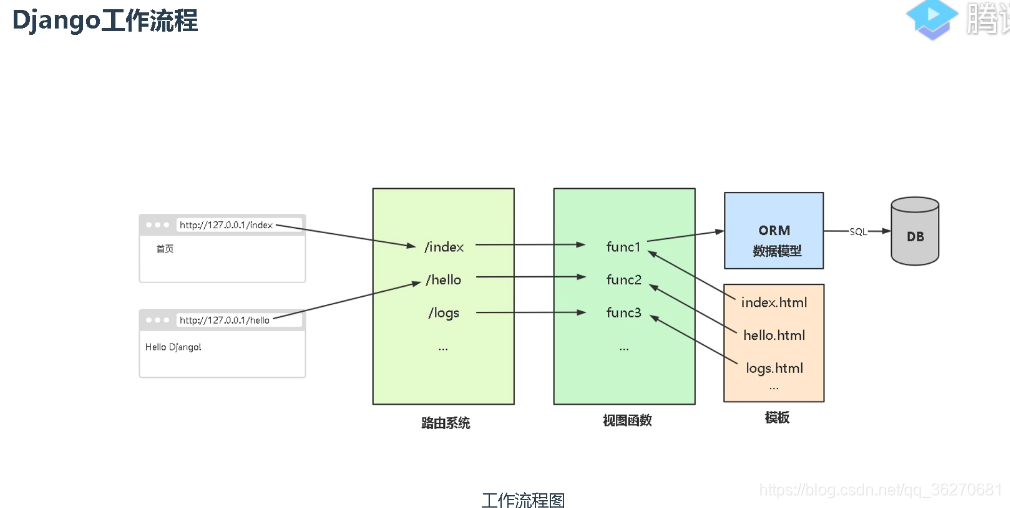 浏览器? ?-urls.py -? views.py? ?-index 函数