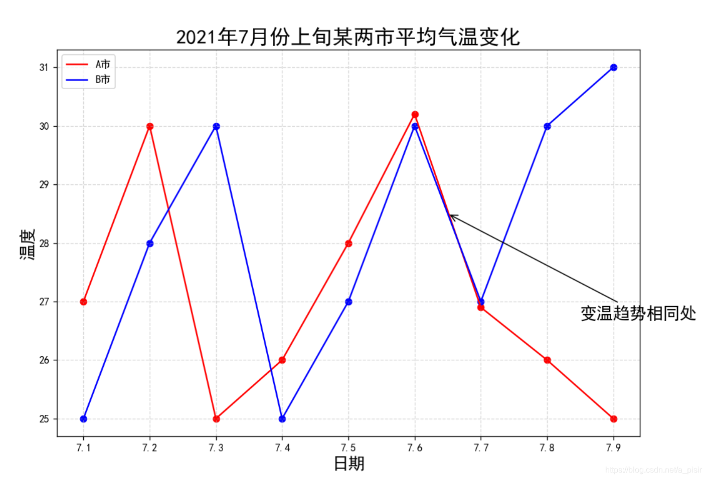 plt.legend(handles=[line1,line2],labels=['最高温度','最低温度'],loc='best')