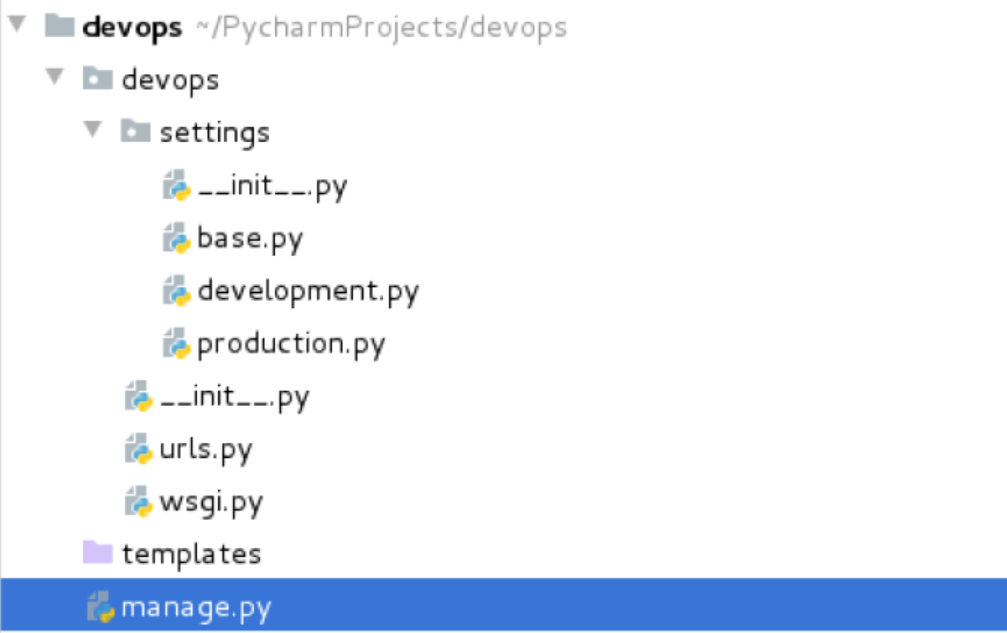 1.1 base.py文件: 基本的配置文件,将原先seetings.py文件的内容拷贝进来.(参考第一个devops项目)