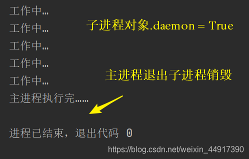# 设置守护主进程,主进程退出后子进程直接销毁,不再执行子进程的代码