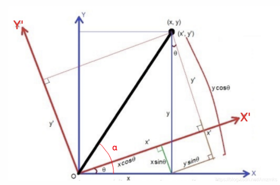 ?图像逆时针旋转θ,则根据坐标转换可得旋转转换为: