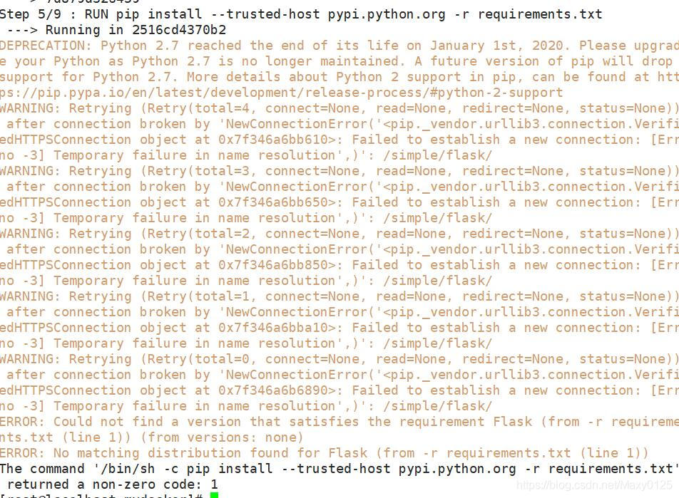 Step 5/9 : RUN pip install --trusted-host pypi.python.org -r requirements.txt