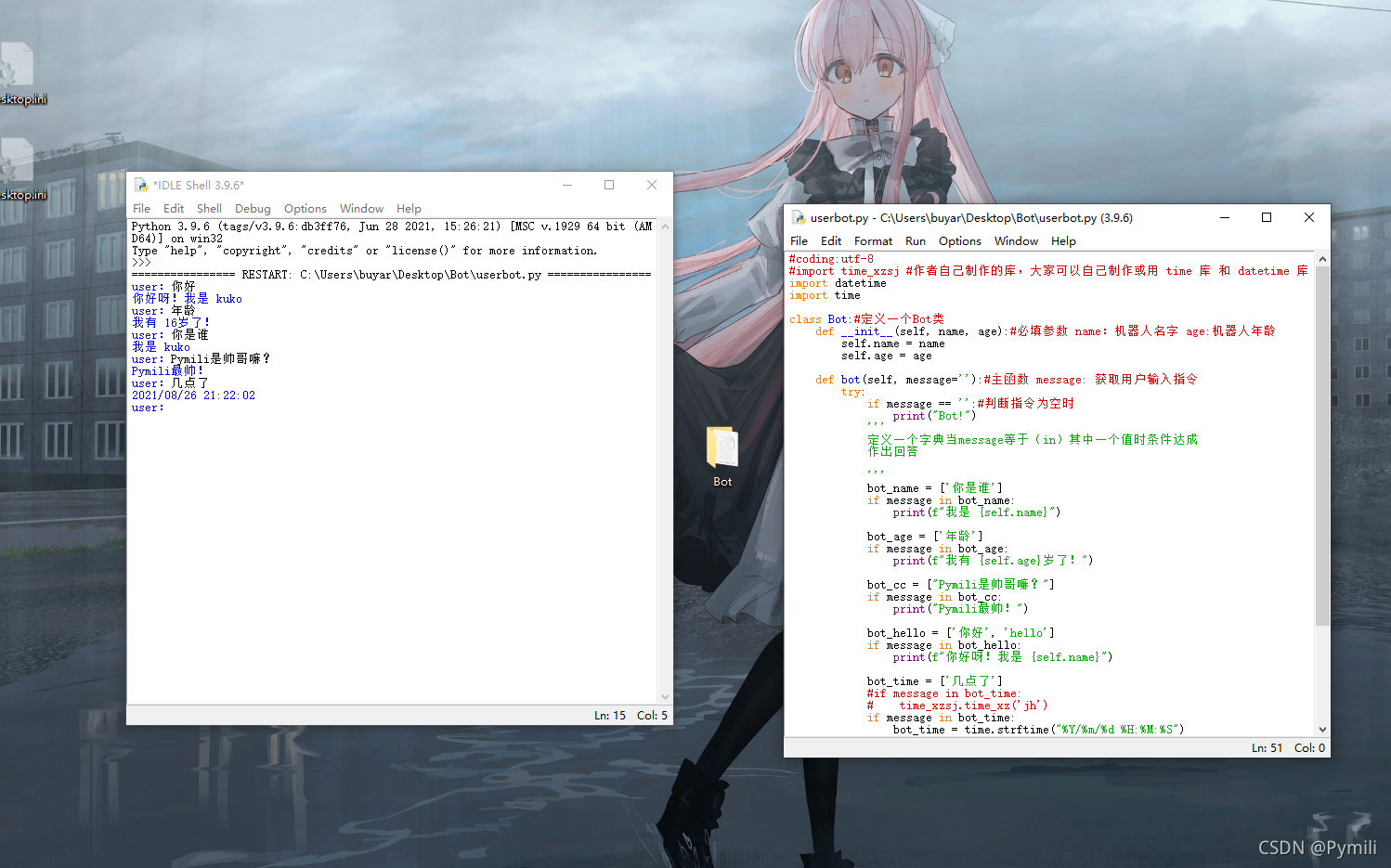 大家好我是 Pymili? !,在其他论文中我们可以看到一些大佬们的机器人。有用nonebot2 有用百度api转语音的。 各路有各路的大佬!各有各的特色!如博主? 川川菜鸟?调用图灵聊天机器人api再使用百度语音转换成萝莉音。让人看了都兴奋!? 别人都做过了,我再去弄给大家看就不行了呀!那我们可以自己写一个机器人,自定义回复,自己训练一个机器人。异常简单!正式开始!