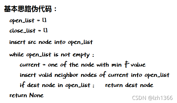#每次选取F值最小的一个结点,将他所有有效邻居加入列表,直到列表为空或出现终点为止。