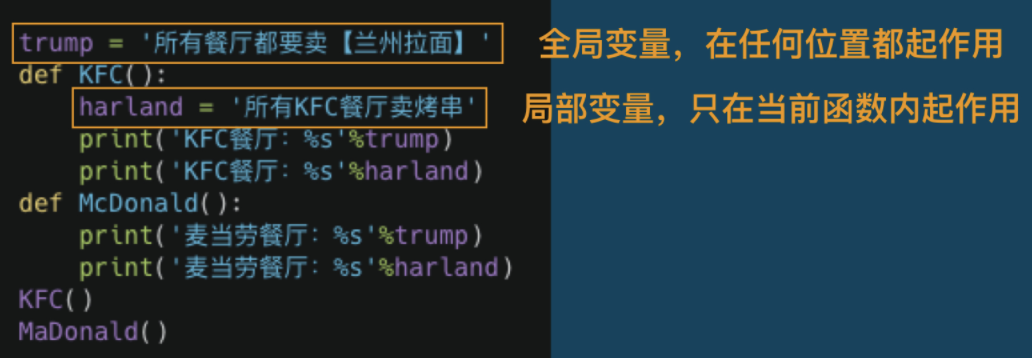 全局作用域:在所有函数之外赋值的变量,可以在程序任意位置使用(全局作用域),这就是全局变量; 局部作用域:在某个函数内部赋值的变量,只能在当前函数内使用(局部作用域),出了这个函数,它就不起作用了