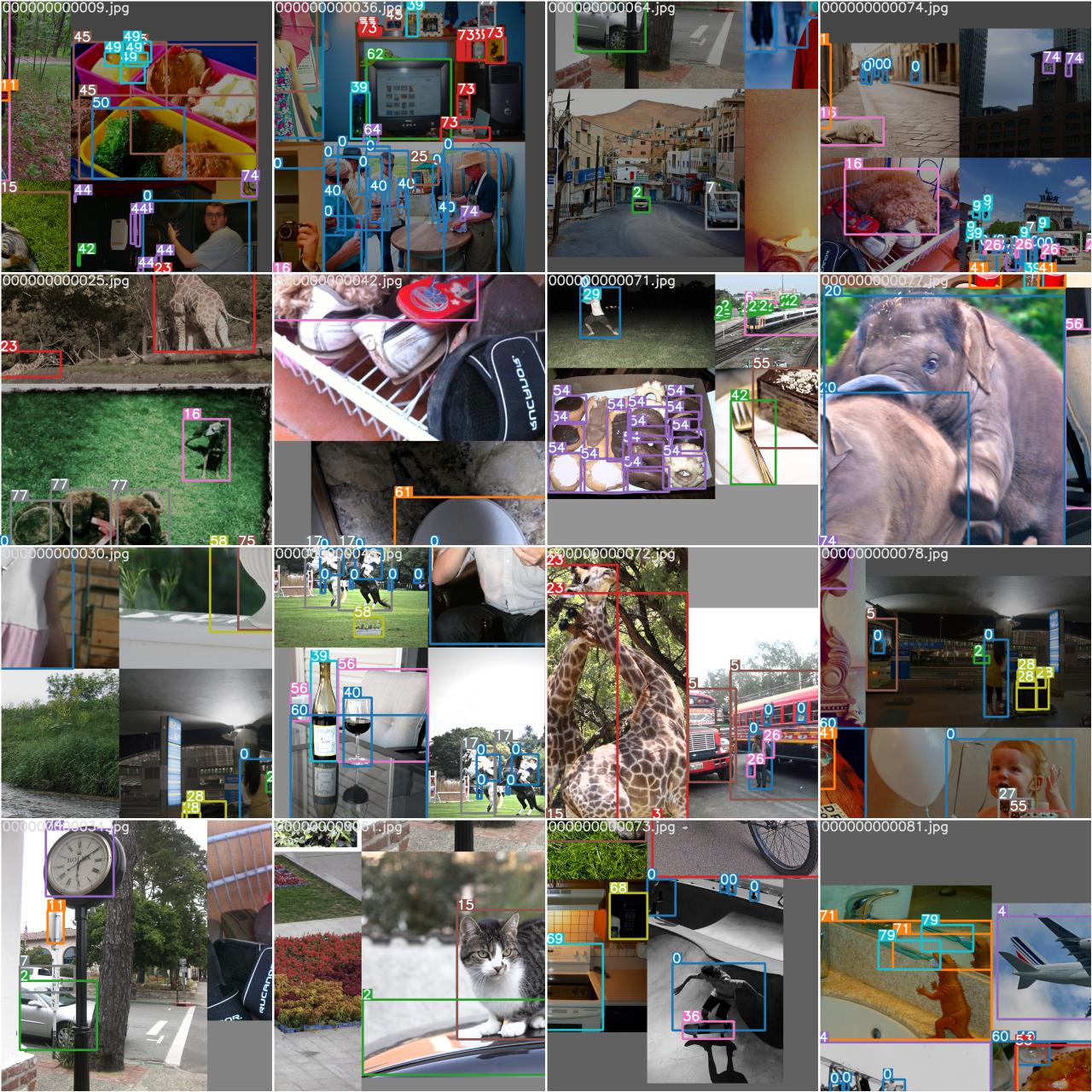 四张图像拼成一张图像 下面的16张图像是一个batch-size 实例1  实例2