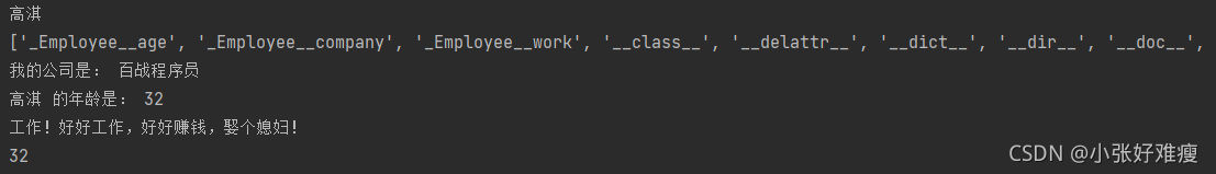 print(p1._Employee__age) #通过这种方式可以直接访问到私有属性。通过dir 可以查到属性:_Employee__age