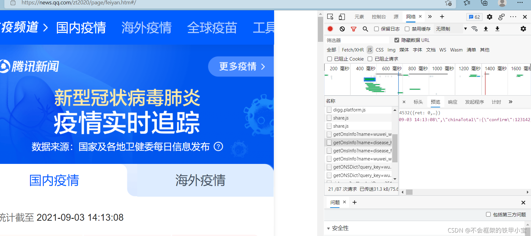①首先我们用python去写一个爬虫脚本去获取一些疫情数据(我用的是腾讯)