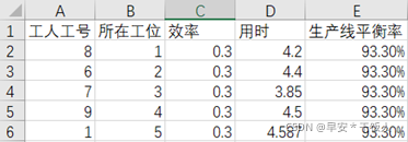 head = ['工人工号', '所在工位', '效率', '用时', '生产线平衡率']