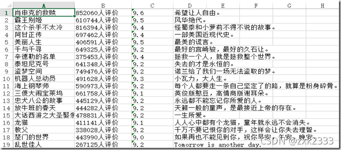输出结果:  原Excel表格情况:  二、写Excel表(xlwt模块)