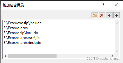 - 将c-ares-17.2,libosip2-5.2.1,libexosip2-5.0,三个文件下载解压,然后重命名为c-ares,exosip,osip三个文件,放到一个目录