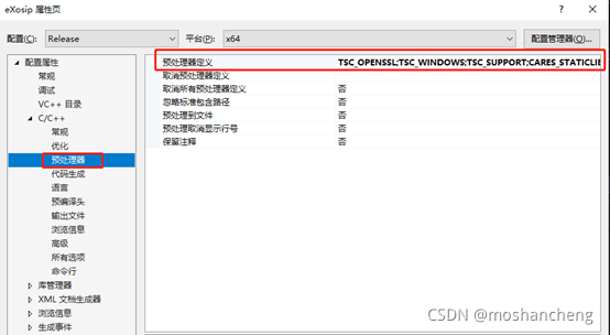 在 找到两个预定义HAVE_OPENSSL_SSL_H,TSC_SUPPORT,然后删除。这是防止出现error C1083: 无法打开包括文件: “openssl/opensslv.h”: No such file or directory?等错误?