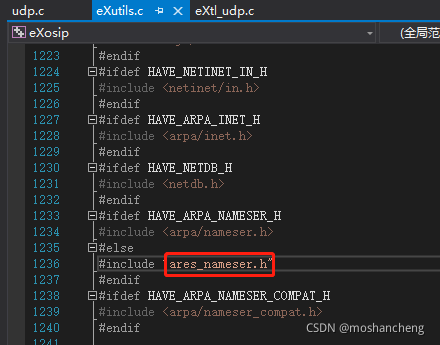 11.修改nameser.h为ares_nameser.h,因为系统缺少nameser.h文件,但是有ares_nameser.h