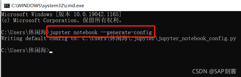接着在CMD中输入命令“jupyter notebook --generate-config”,运行之后会生成一个文件,具体路径如下图所示。