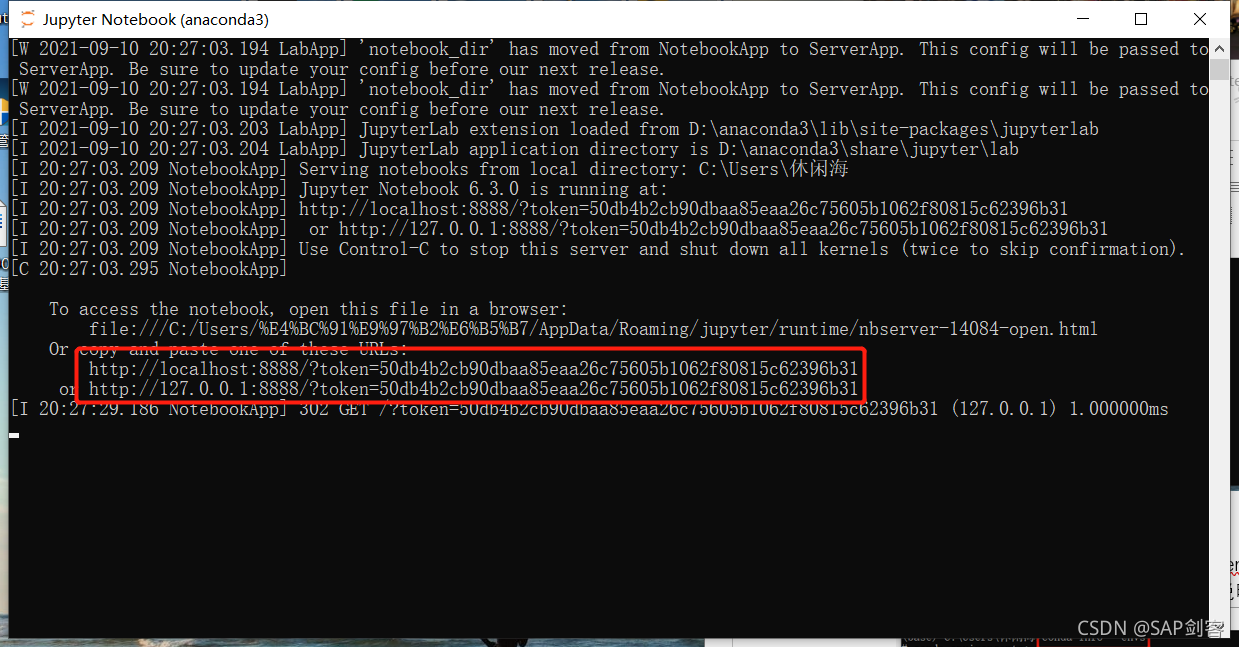 然后打开“Jupyter Notebook”,就会弹出如下界面,貌似成功了,但是不会自动弹出浏览器。