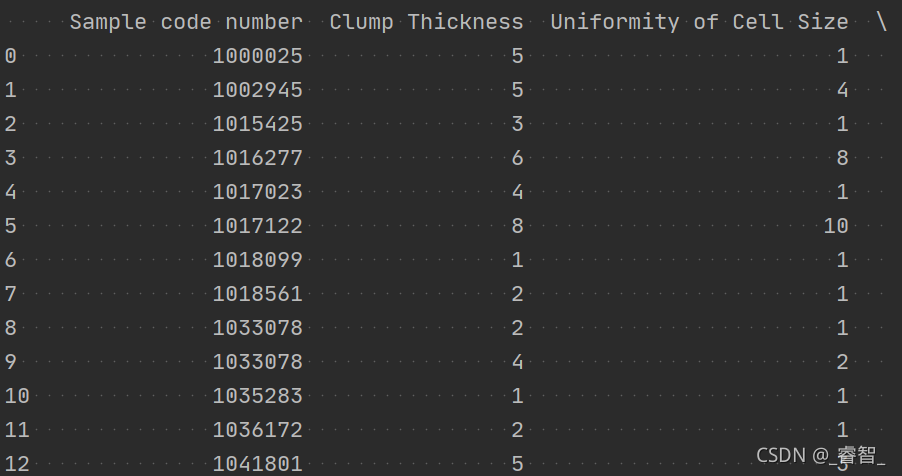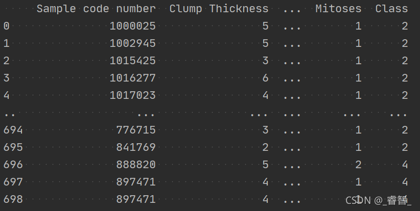 下载测试数据的网站:https://archive.ics.uci.edu/ml/machine-learning-databases/breast-cancer-wisconsin/breast-cancer-wisconsin.data