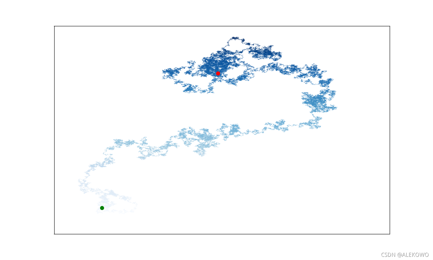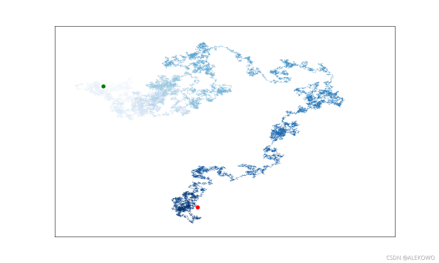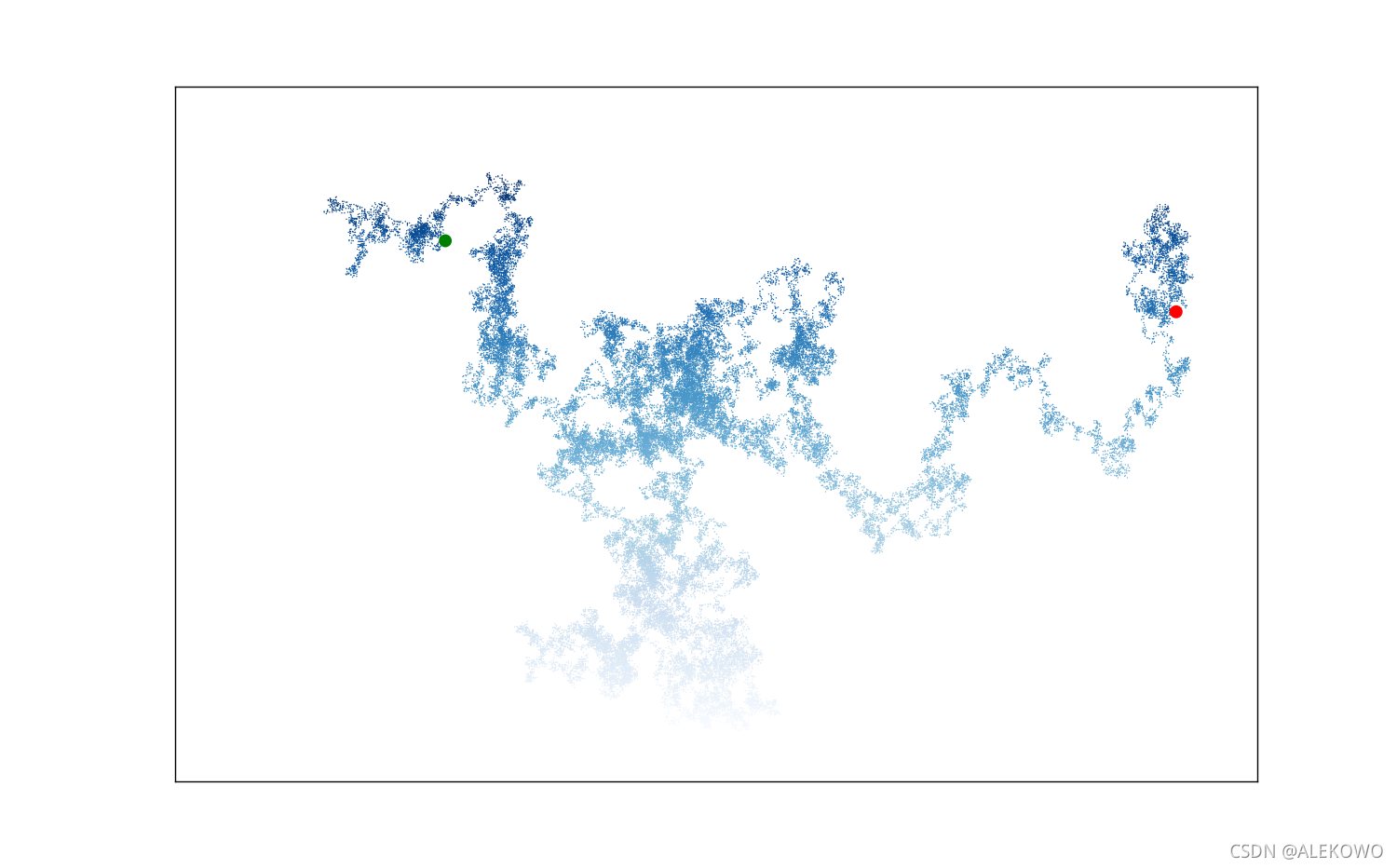 这里的y_values是由随机漫步产生的,第一个点到最后一个点是连续变化的,这种随机漫步会导致,第一个点到最后一个点的位置规律是有迹可循的(比如y值是从小到大变化的),局部看上去是随机的,但是趋势不是,趋势是有规律的。