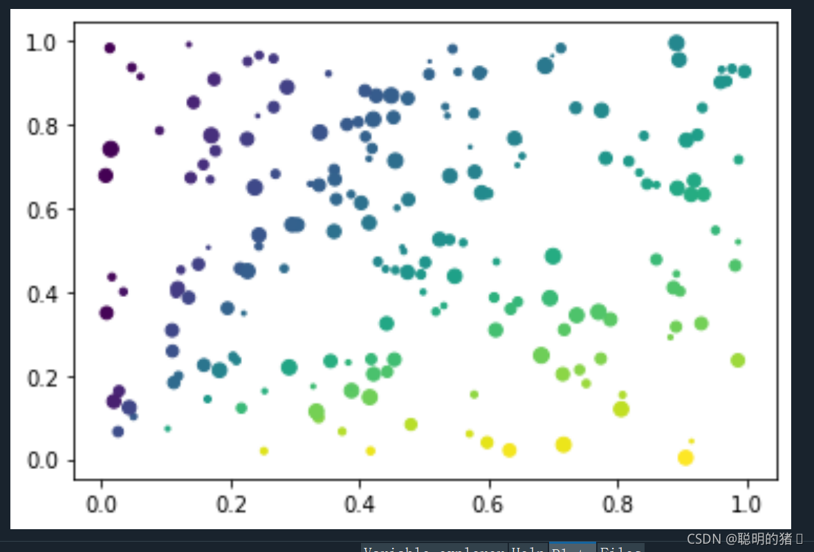 例:绘制由200个随机点组成的散点图,要求随机点的横纵坐标值均在0~1之间