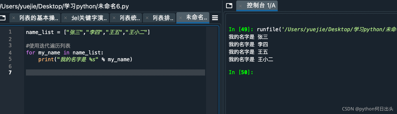 - 在python中,为了提高列表的遍历效率,专门提供迭代iteration遍历