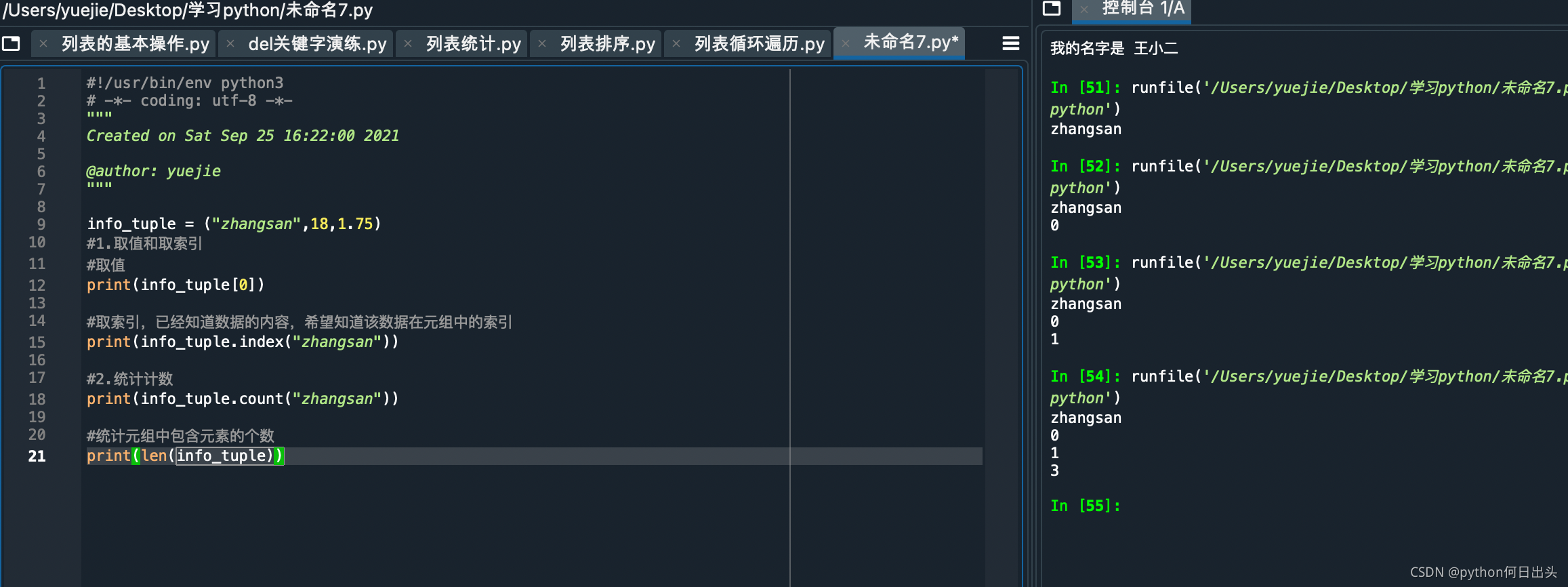 - 定义:info_tuple = (zhangsan" , 18 , 1.75)