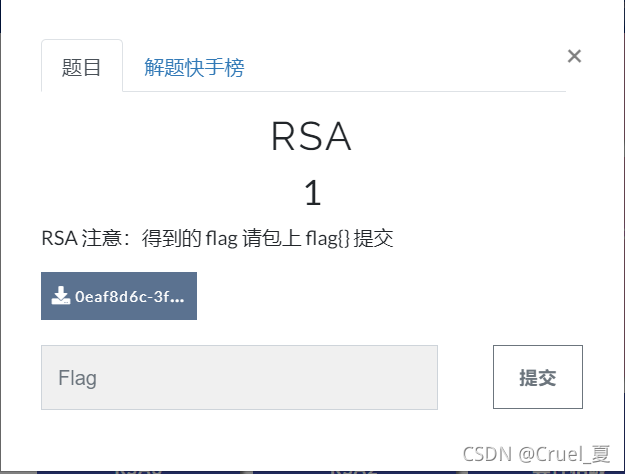 这周啊,中秋假期加上课多,很多课程都没得学会,搞学业去了,没怎么学习CTF,呜呜,钻研java和数据结构去了(天杀的数据结构,搞半天也还不会写链表。。),不过还是看了看好多道RSA的题目,接触了很多种题型,比如知道e,dp,dq求flag的、还有已知e,n求flag的。